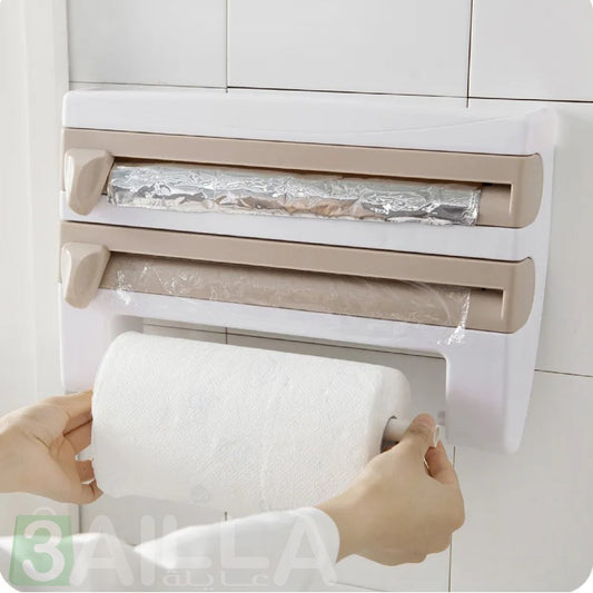 منظم مطبخ مع موزع ورق وحامل لفائف
